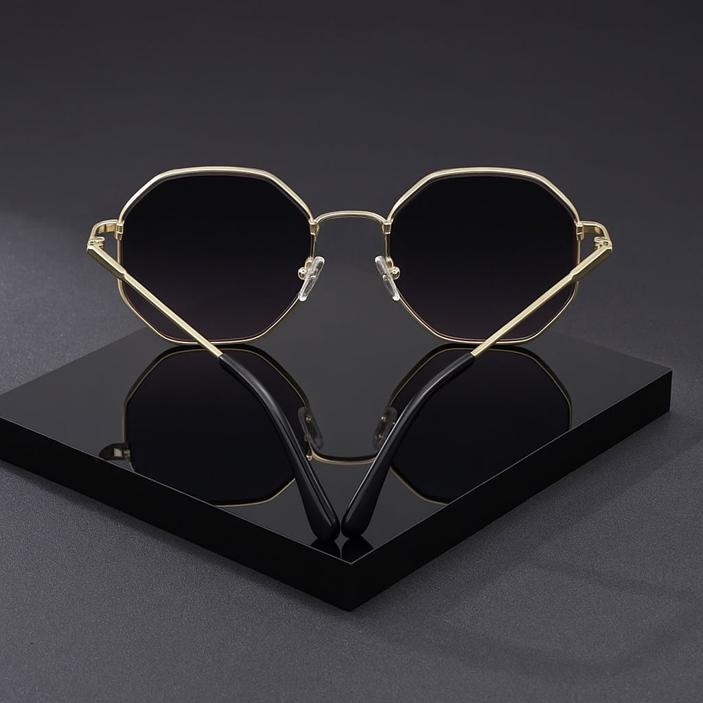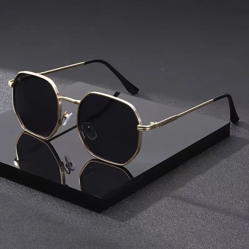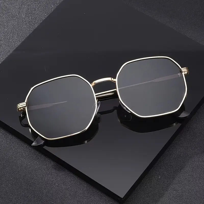 Deze bril met goudkleurig montuur en getinte glazen is jouw ultieme power-accessoire waarmee je stijl, lef en luxe in één gedurfde blik vangt.