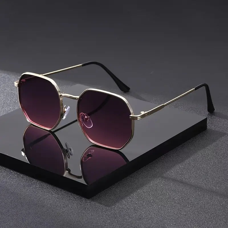🕶️ Goudkleurig montuur met paarse glazen – een luxe combinatie die stijl uitstraalt.